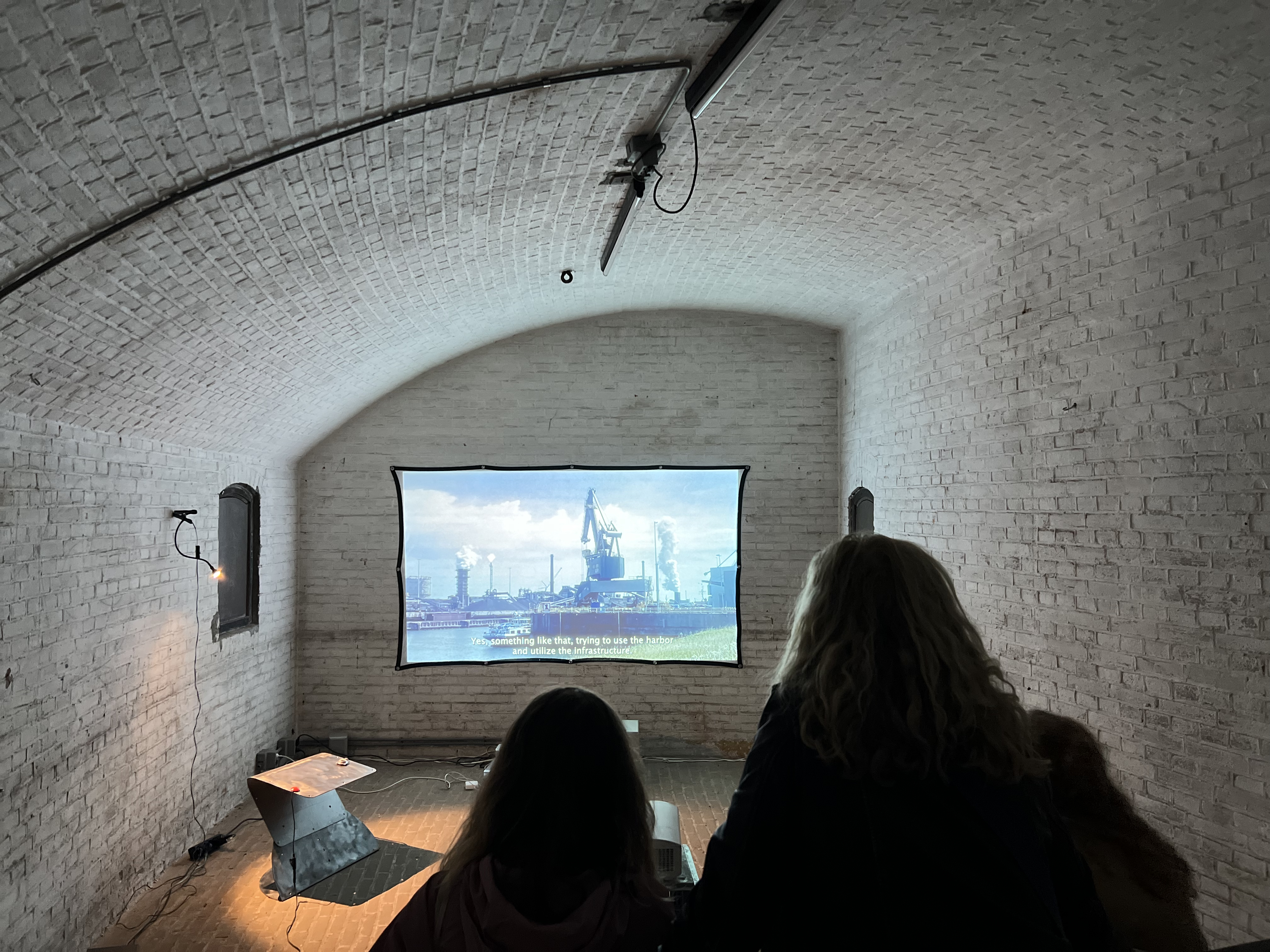 The immersive journey of "Dancing in The Dirt," is an audio-visual installation set against the backdrop of TATA Steel, an industrial complex in IJmuiden, which is the highest polluter in the Netherland. The factory is accused of releasing heavy metals and extensive energy misuse. This installation emerges from extensive research into non-anthropocentrism and is deeply rooted in Malou van der Veld's heritage. With a personal connection to this site through her family history and upbringing, she was compelled to show a forgotten narrative – one that shifts the focus from the human-centric perspective. The installation sheds light on endangered species that have remarkably found refuge within the diverse ecosystems of this automated factory. The narrative unfolds through the voices of three distinct stakeholders: Willem, the engineer integral to the construction of the second steel furnace in 1968; Benedicte Fiqck, the lawyer at the forefront of the legal battle against the factory; and Ruud Bussink, Ecologist of TATA Complex.
